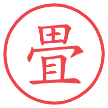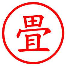 [朱肉の色]を選び、入力窓に“畳”と入力して[生成]ボタンを押すと、印影が更新され、リンクから電子印鑑(デジタル印影)がダウンロードできます。 電子印鑑「畳」の作り方文字表示が変なときや、文字バランスが悪いときは[字形切替]のチェックボックスでON/OFFを切り替え[生成]しなおしてください。 生成される画像は通常の印影「畳.png」と、にじみを表現した少し太めの印影「畳B.png」の背面透過PNG形式2種と、鮮明なPDF形式の印影「畳.pdf」の計3種類です。 朱肉の微妙な色の違いを7色で表現しました。デフォルト(左端)は、JISが定めた朱肉の色のマンセル値(7.5R 5/14)をRGB値(217,66,54)に変換したものになっています。 「電子透かし」にチェックを入れて[生成]ボタンを押すと、タイムスタンプを電子透かしとして埋め込んだセキュアな電子印鑑が作れます。詳細は別ページの「タイムスタンプと電子透かし」でご覧ください。 畳さんの日付印が作れます。「日付スタンプメーカー」は、社内向けの書類に利用されることの多い日付印(データ印)が無料で作れるWebアプリケーションです。中段に日付が入り、上段と下段は、ともに8文字まで文字が入ります。 ![]() 古代文字で落款印が作れます。「落款スタンプメーカー」で作品を引き立たせる落款印が作れます。