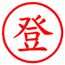 [朱肉の色]を選び、入力窓に“登”と入力して[生成]ボタンを押すと、印影が更新され、リンクから電子印鑑(デジタル印影)がダウンロードできます。 電子印鑑「登」の作り方文字表示が変なときや、文字バランスが悪いときは[字形切替]のチェックボックスでON/OFFを切り替え[生成]しなおしてください。 生成される画像は通常の印影「登.png」と、にじみを表現した少し太めの印影「登B.png」の背面透過PNG形式2種と、鮮明なPDF形式の印影「登.pdf」の計3種類です。 朱肉の微妙な色の違いを7色で表現しました。デフォルト(左端)は、JISが定めた朱肉の色のマンセル値(7.5R 5/14)をRGB値(217,66,54)に変換したものになっています。 「電子透かし」にチェックを入れて[生成]ボタンを押すと、タイムスタンプを透かしとして埋め込んだセキュアな電子印鑑が作れます。詳細は別ページの「電子透かしとタイムスタンプ」でご覧ください。 登さんの日付印が作れます。「日付スタンプメーカー」は、社内向けの書類に利用されることの多い日付印(データ印)が無料で作れるWebアプリケーションです。中段に日付が入り、上段と下段は、ともに8文字まで文字が入ります。 ![]() 古代文字で落款印が作れます。「落款スタンプメーカー」で作品を引き立たせる落款印が作れます。