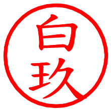 [朱肉の色]を選び、入力窓に“白玖”と入力して[生成]ボタンを押すと、印影が更新され、リンクから電子印鑑(デジタル印影)がダウンロードできます。 電子印鑑「白玖」の作り方文字表示が変なときや、文字バランスが悪いときは[字形切替]のチェックボックスでON/OFFを切り替え[生成]しなおしてください。 生成される画像は通常の印影「白玖.png」と、にじみを表現した少し太めの印影「白玖B.png」の背面透過PNG形式2種と、鮮明なPDF形式の印影「白玖.pdf」の計3種類です。 朱肉の微妙な色の違いを7色で表現しました。デフォルト(左端)は、JISが定めた朱肉の色のマンセル値(7.5R 5/14)をRGB値(217,66,54)に変換したものになっています。 「電子透かし」にチェックを入れて[生成]ボタンを押すと、タイムスタンプを電子透かしとして埋め込んだセキュアな電子印鑑が作れます。詳細は別ページの「タイムスタンプと電子透かし」でご覧ください。 白玖さんの日付印が作れます。「日付スタンプメーカー」は、社内向けの書類に利用されることの多い日付印(データ印)が無料で作れるWebアプリケーションです。中段に日付が入り、上段と下段は、ともに8文字まで文字が入ります。 ![]() 古代文字で落款印が作れます。「落款スタンプメーカー」で作品を引き立たせる落款印が作れます。