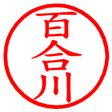 [朱肉の色]を選び、入力窓に“百合川”と入力して[生成]ボタンを押すと、印影が更新され、リンクから電子印鑑(デジタル印影)がダウンロードできます。 電子印鑑「百合川」の作り方文字表示が変なときや、文字バランスが悪いときは[字形切替]のチェックボックスでON/OFFを切り替え[生成]しなおしてください。 生成される画像は通常の印影「百合川.png」と、にじみを表現した少し太めの印影「百合川B.png」の背面透過PNG形式2種と、鮮明なPDF形式の印影「百合川.pdf」の計3種類です。 朱肉の微妙な色の違いを7色で表現しました。デフォルト(左端)は、JISが定めた朱肉の色のマンセル値(7.5R 5/14)をRGB値(217,66,54)に変換したものになっています。 「電子透かし」にチェックを入れて[生成]ボタンを押すと、タイムスタンプを電子透かしとして埋め込んだセキュアな電子印鑑が作れます。詳細は別ページの「タイムスタンプと電子透かし」でご覧ください。 百合川さんの日付印が作れます。「日付スタンプメーカー」は、社内向けの書類に利用されることの多い日付印(データ印)が無料で作れるWebアプリケーションです。中段に日付が入り、上段と下段は、ともに8文字まで文字が入ります。 ![]() 古代文字で落款印が作れます。「落款スタンプメーカー」で作品を引き立たせる落款印が作れます。