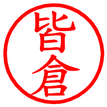 [朱肉の色]を選び、入力窓に“皆倉”と入力して[生成]ボタンを押すと、印影が更新され、リンクから電子印鑑(デジタル印影)がダウンロードできます。 電子印鑑「皆倉」の作り方文字表示が変なときや、文字バランスが悪いときは[字形切替]のチェックボックスでON/OFFを切り替え[生成]しなおしてください。 生成される画像は通常の印影「皆倉.png」と、にじみを表現した少し太めの印影「皆倉B.png」の背面透過PNG形式2種と、鮮明なPDF形式の印影「皆倉.pdf」の計3種類です。 朱肉の微妙な色の違いを7色で表現しました。デフォルト(左端)は、JISが定めた朱肉の色のマンセル値(7.5R 5/14)をRGB値(217,66,54)に変換したものになっています。 「電子透かし」にチェックを入れて[生成]ボタンを押すと、タイムスタンプを電子透かしとして埋め込んだセキュアな電子印鑑が作れます。詳細は別ページの「タイムスタンプと電子透かし」でご覧ください。 皆倉さんの日付印が作れます。「日付スタンプメーカー」は、社内向けの書類に利用されることの多い日付印(データ印)が無料で作れるWebアプリケーションです。中段に日付が入り、上段と下段は、ともに8文字まで文字が入ります。 ![]() 古代文字で落款印が作れます。「落款スタンプメーカー」で作品を引き立たせる落款印が作れます。
