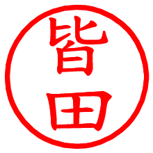 [朱肉の色]を選び、入力窓に“皆田”と入力して[生成]ボタンを押すと、印影が更新され、リンクから電子印鑑(デジタル印影)がダウンロードできます。 電子印鑑「皆田」の作り方文字表示が変なときや、文字バランスが悪いときは[字形切替]のチェックボックスでON/OFFを切り替え[生成]しなおしてください。 生成される画像は通常の印影「皆田.png」と、にじみを表現した少し太めの印影「皆田B.png」の背面透過PNG形式2種と、鮮明なPDF形式の印影「皆田.pdf」の計3種類です。 朱肉の微妙な色の違いを7色で表現しました。デフォルト(左端)は、JISが定めた朱肉の色のマンセル値(7.5R 5/14)をRGB値(217,66,54)に変換したものになっています。 「電子透かし」にチェックを入れて[生成]ボタンを押すと、タイムスタンプを電子透かしとして埋め込んだセキュアな電子印鑑が作れます。詳細は別ページの「タイムスタンプと電子透かし」でご覧ください。 皆田さんの日付印が作れます。「日付スタンプメーカー」は、社内向けの書類に利用されることの多い日付印(データ印)が無料で作れるWebアプリケーションです。中段に日付が入り、上段と下段は、ともに8文字まで文字が入ります。 ![]() 古代文字で落款印が作れます。「落款スタンプメーカー」で作品を引き立たせる落款印が作れます。