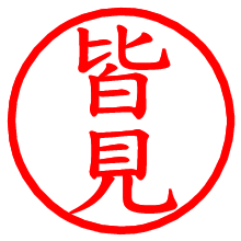[朱肉の色]を選び、入力窓に“皆見”と入力して[生成]ボタンを押すと、印影が更新され、リンクから電子印鑑(デジタル印影)がダウンロードできます。 電子印鑑「皆見」の作り方文字表示が変なときや、文字バランスが悪いときは[字形切替]のチェックボックスでON/OFFを切り替え[生成]しなおしてください。 生成される画像は通常の印影「皆見.png」と、にじみを表現した少し太めの印影「皆見B.png」の背面透過PNG形式2種と、鮮明なPDF形式の印影「皆見.pdf」の計3種類です。 朱肉の微妙な色の違いを7色で表現しました。デフォルト(左端)は、JISが定めた朱肉の色のマンセル値(7.5R 5/14)をRGB値(217,66,54)に変換したものになっています。 「電子透かし」にチェックを入れて[生成]ボタンを押すと、タイムスタンプを電子透かしとして埋め込んだセキュアな電子印鑑が作れます。詳細は別ページの「タイムスタンプと電子透かし」でご覧ください。 皆見さんの日付印が作れます。「日付スタンプメーカー」は、社内向けの書類に利用されることの多い日付印(データ印)が無料で作れるWebアプリケーションです。中段に日付が入り、上段と下段は、ともに8文字まで文字が入ります。 ![]() 古代文字で落款印が作れます。「落款スタンプメーカー」で作品を引き立たせる落款印が作れます。