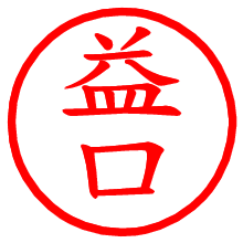 [朱肉の色]を選び、入力窓に“益口”と入力して[生成]ボタンを押すと、印影が更新され、リンクから電子印鑑(デジタル印影)がダウンロードできます。 電子印鑑「益口」の作り方文字表示が変なときや、文字バランスが悪いときは[字形切替]のチェックボックスでON/OFFを切り替え[生成]しなおしてください。 生成される画像は通常の印影「益口.png」と、にじみを表現した少し太めの印影「益口B.png」の背面透過PNG形式2種と、鮮明なPDF形式の印影「益口.pdf」の計3種類です。 朱肉の微妙な色の違いを7色で表現しました。デフォルト(左端)は、JISが定めた朱肉の色のマンセル値(7.5R 5/14)をRGB値(217,66,54)に変換したものになっています。 「電子透かし」にチェックを入れて[生成]ボタンを押すと、タイムスタンプを電子透かしとして埋め込んだセキュアな電子印鑑が作れます。詳細は別ページの「タイムスタンプと電子透かし」でご覧ください。 益口さんの日付印が作れます。「日付スタンプメーカー」は、社内向けの書類に利用されることの多い日付印(データ印)が無料で作れるWebアプリケーションです。中段に日付が入り、上段と下段は、ともに8文字まで文字が入ります。 ![]() 古代文字で落款印が作れます。「落款スタンプメーカー」で作品を引き立たせる落款印が作れます。