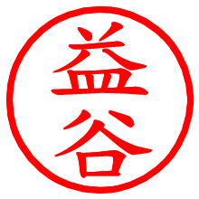 [朱肉の色]を選び、入力窓に“益谷”と入力して[生成]ボタンを押すと、印影が更新され、リンクから電子印鑑(デジタル印影)がダウンロードできます。 電子印鑑「益谷」の作り方文字表示が変なときや、文字バランスが悪いときは[字形切替]のチェックボックスでON/OFFを切り替え[生成]しなおしてください。 生成される画像は通常の印影「益谷.png」と、にじみを表現した少し太めの印影「益谷B.png」の背面透過PNG形式2種と、鮮明なPDF形式の印影「益谷.pdf」の計3種類です。 朱肉の微妙な色の違いを7色で表現しました。デフォルト(左端)は、JISが定めた朱肉の色のマンセル値(7.5R 5/14)をRGB値(217,66,54)に変換したものになっています。 「電子透かし」にチェックを入れて[生成]ボタンを押すと、タイムスタンプを電子透かしとして埋め込んだセキュアな電子印鑑が作れます。詳細は別ページの「タイムスタンプと電子透かし」でご覧ください。 益谷さんの日付印が作れます。「日付スタンプメーカー」は、社内向けの書類に利用されることの多い日付印(データ印)が無料で作れるWebアプリケーションです。中段に日付が入り、上段と下段は、ともに8文字まで文字が入ります。 ![]() 古代文字で落款印が作れます。「落款スタンプメーカー」で作品を引き立たせる落款印が作れます。