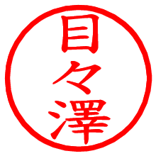 [朱肉の色]を選び、入力窓に“目々澤”と入力して[生成]ボタンを押すと、印影が更新され、リンクから電子印鑑(デジタル印影)がダウンロードできます。 電子印鑑「目々澤」の作り方文字表示が変なときや、文字バランスが悪いときは[字形切替]のチェックボックスでON/OFFを切り替え[生成]しなおしてください。 生成される画像は通常の印影「目々澤.png」と、にじみを表現した少し太めの印影「目々澤B.png」の背面透過PNG形式2種と、鮮明なPDF形式の印影「目々澤.pdf」の計3種類です。 朱肉の微妙な色の違いを7色で表現しました。デフォルト(左端)は、JISが定めた朱肉の色のマンセル値(7.5R 5/14)をRGB値(217,66,54)に変換したものになっています。 「電子透かし」にチェックを入れて[生成]ボタンを押すと、タイムスタンプを電子透かしとして埋め込んだセキュアな電子印鑑が作れます。詳細は別ページの「タイムスタンプと電子透かし」でご覧ください。 目々澤さんの日付印が作れます。「日付スタンプメーカー」は、社内向けの書類に利用されることの多い日付印(データ印)が無料で作れるWebアプリケーションです。中段に日付が入り、上段と下段は、ともに8文字まで文字が入ります。 ![]() 古代文字で落款印が作れます。「落款スタンプメーカー」で作品を引き立たせる落款印が作れます。