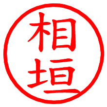 [朱肉の色]を選び、入力窓に“相垣”と入力して[生成]ボタンを押すと、印影が更新され、リンクから電子印鑑(デジタル印影)がダウンロードできます。 電子印鑑「相垣」の作り方文字表示が変なときや、文字バランスが悪いときは[字形切替]のチェックボックスでON/OFFを切り替え[生成]しなおしてください。 生成される画像は通常の印影「相垣.png」と、にじみを表現した少し太めの印影「相垣B.png」の背面透過PNG形式2種と、鮮明なPDF形式の印影「相垣.pdf」の計3種類です。 朱肉の微妙な色の違いを7色で表現しました。デフォルト(左端)は、JISが定めた朱肉の色のマンセル値(7.5R 5/14)をRGB値(217,66,54)に変換したものになっています。 「電子透かし」にチェックを入れて[生成]ボタンを押すと、タイムスタンプを電子透かしとして埋め込んだセキュアな電子印鑑が作れます。詳細は別ページの「タイムスタンプと電子透かし」でご覧ください。 相垣さんの日付印が作れます。「日付スタンプメーカー」は、社内向けの書類に利用されることの多い日付印(データ印)が無料で作れるWebアプリケーションです。中段に日付が入り、上段と下段は、ともに8文字まで文字が入ります。 ![]() 古代文字で落款印が作れます。「落款スタンプメーカー」で作品を引き立たせる落款印が作れます。