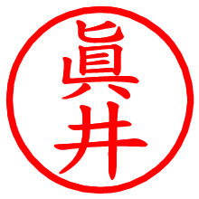 [朱肉の色]を選び、入力窓に“眞井”と入力して[生成]ボタンを押すと、印影が更新され、リンクから電子印鑑(デジタル印影)がダウンロードできます。 電子印鑑「眞井」の作り方文字表示が変なときや、文字バランスが悪いときは[字形切替]のチェックボックスでON/OFFを切り替え[生成]しなおしてください。 生成される画像は通常の印影「眞井.png」と、にじみを表現した少し太めの印影「眞井B.png」の背面透過PNG形式2種と、鮮明なPDF形式の印影「眞井.pdf」の計3種類です。 朱肉の微妙な色の違いを7色で表現しました。デフォルト(左端)は、JISが定めた朱肉の色のマンセル値(7.5R 5/14)をRGB値(217,66,54)に変換したものになっています。 「電子透かし」にチェックを入れて[生成]ボタンを押すと、タイムスタンプを電子透かしとして埋め込んだセキュアな電子印鑑が作れます。詳細は別ページの「タイムスタンプと電子透かし」でご覧ください。 眞井さんの日付印が作れます。「日付スタンプメーカー」は、社内向けの書類に利用されることの多い日付印(データ印)が無料で作れるWebアプリケーションです。中段に日付が入り、上段と下段は、ともに8文字まで文字が入ります。 ![]() 古代文字で落款印が作れます。「落款スタンプメーカー」で作品を引き立たせる落款印が作れます。