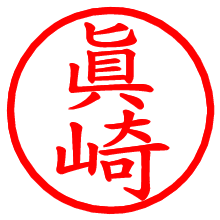 [朱肉の色]を選び、入力窓に“眞崎”と入力して[生成]ボタンを押すと、印影が更新され、リンクから電子印鑑(デジタル印影)がダウンロードできます。 電子印鑑「眞崎」の作り方文字表示が変なときや、文字バランスが悪いときは[字形切替]のチェックボックスでON/OFFを切り替え[生成]しなおしてください。 生成される画像は通常の印影「眞崎.png」と、にじみを表現した少し太めの印影「眞崎B.png」の背面透過PNG形式2種と、鮮明なPDF形式の印影「眞崎.pdf」の計3種類です。 朱肉の微妙な色の違いを7色で表現しました。デフォルト(左端)は、JISが定めた朱肉の色のマンセル値(7.5R 5/14)をRGB値(217,66,54)に変換したものになっています。 「電子透かし」にチェックを入れて[生成]ボタンを押すと、タイムスタンプを電子透かしとして埋め込んだセキュアな電子印鑑が作れます。詳細は別ページの「タイムスタンプと電子透かし」でご覧ください。 眞崎さんの日付印が作れます。「日付スタンプメーカー」は、社内向けの書類に利用されることの多い日付印(データ印)が無料で作れるWebアプリケーションです。中段に日付が入り、上段と下段は、ともに8文字まで文字が入ります。 ![]() 古代文字で落款印が作れます。「落款スタンプメーカー」で作品を引き立たせる落款印が作れます。