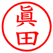[朱肉の色]を選び、入力窓に“眞田”と入力して[生成]ボタンを押すと、印影が更新され、リンクから電子印鑑(デジタル印影)がダウンロードできます。 電子印鑑「眞田」の作り方文字表示が変なときや、文字バランスが悪いときは[字形切替]のチェックボックスでON/OFFを切り替え[生成]しなおしてください。 生成される画像は通常の印影「眞田.png」と、にじみを表現した少し太めの印影「眞田B.png」の背面透過PNG形式2種と、鮮明なPDF形式の印影「眞田.pdf」の計3種類です。 朱肉の微妙な色の違いを7色で表現しました。デフォルト(左端)は、JISが定めた朱肉の色のマンセル値(7.5R 5/14)をRGB値(217,66,54)に変換したものになっています。 「電子透かし」にチェックを入れて[生成]ボタンを押すと、タイムスタンプを電子透かしとして埋め込んだセキュアな電子印鑑が作れます。詳細は別ページの「タイムスタンプと電子透かし」でご覧ください。 眞田さんの日付印が作れます。「日付スタンプメーカー」は、社内向けの書類に利用されることの多い日付印(データ印)が無料で作れるWebアプリケーションです。中段に日付が入り、上段と下段は、ともに8文字まで文字が入ります。 ![]() 古代文字で落款印が作れます。「落款スタンプメーカー」で作品を引き立たせる落款印が作れます。
