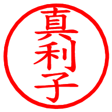 [朱肉の色]を選び、入力窓に“真利子”と入力して[生成]ボタンを押すと、印影が更新され、リンクから電子印鑑(デジタル印影)がダウンロードできます。 電子印鑑「真利子」の作り方文字表示が変なときや、文字バランスが悪いときは[字形切替]のチェックボックスでON/OFFを切り替え[生成]しなおしてください。 生成される画像は通常の印影「真利子.png」と、にじみを表現した少し太めの印影「真利子B.png」の背面透過PNG形式2種と、鮮明なPDF形式の印影「真利子.pdf」の計3種類です。 朱肉の微妙な色の違いを7色で表現しました。デフォルト(左端)は、JISが定めた朱肉の色のマンセル値(7.5R 5/14)をRGB値(217,66,54)に変換したものになっています。 「電子透かし」にチェックを入れて[生成]ボタンを押すと、タイムスタンプを電子透かしとして埋め込んだセキュアな電子印鑑が作れます。詳細は別ページの「タイムスタンプと電子透かし」でご覧ください。 真利子さんの日付印が作れます。「日付スタンプメーカー」は、社内向けの書類に利用されることの多い日付印(データ印)が無料で作れるWebアプリケーションです。中段に日付が入り、上段と下段は、ともに8文字まで文字が入ります。 ![]() 古代文字で落款印が作れます。「落款スタンプメーカー」で作品を引き立たせる落款印が作れます。
