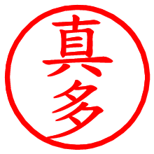[朱肉の色]を選び、入力窓に“真多”と入力して[生成]ボタンを押すと、印影が更新され、リンクから電子印鑑(デジタル印影)がダウンロードできます。 電子印鑑「真多」の作り方文字表示が変なときや、文字バランスが悪いときは[字形切替]のチェックボックスでON/OFFを切り替え[生成]しなおしてください。 生成される画像は通常の印影「真多.png」と、にじみを表現した少し太めの印影「真多B.png」の背面透過PNG形式2種と、鮮明なPDF形式の印影「真多.pdf」の計3種類です。 朱肉の微妙な色の違いを7色で表現しました。デフォルト(左端)は、JISが定めた朱肉の色のマンセル値(7.5R 5/14)をRGB値(217,66,54)に変換したものになっています。 「電子透かし」にチェックを入れて[生成]ボタンを押すと、タイムスタンプを電子透かしとして埋め込んだセキュアな電子印鑑が作れます。詳細は別ページの「タイムスタンプと電子透かし」でご覧ください。 真多さんの日付印が作れます。「日付スタンプメーカー」は、社内向けの書類に利用されることの多い日付印(データ印)が無料で作れるWebアプリケーションです。中段に日付が入り、上段と下段は、ともに8文字まで文字が入ります。 ![]() 古代文字で落款印が作れます。「落款スタンプメーカー」で作品を引き立たせる落款印が作れます。