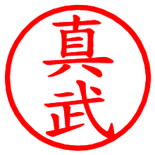 [朱肉の色]を選び、入力窓に“真武”と入力して[生成]ボタンを押すと、印影が更新され、リンクから電子印鑑(デジタル印影)がダウンロードできます。 電子印鑑「真武」の作り方文字表示が変なときや、文字バランスが悪いときは[字形切替]のチェックボックスでON/OFFを切り替え[生成]しなおしてください。 生成される画像は通常の印影「真武.png」と、にじみを表現した少し太めの印影「真武B.png」の背面透過PNG形式2種と、鮮明なPDF形式の印影「真武.pdf」の計3種類です。 朱肉の微妙な色の違いを7色で表現しました。デフォルト(左端)は、JISが定めた朱肉の色のマンセル値(7.5R 5/14)をRGB値(217,66,54)に変換したものになっています。 「電子透かし」にチェックを入れて[生成]ボタンを押すと、タイムスタンプを電子透かしとして埋め込んだセキュアな電子印鑑が作れます。詳細は別ページの「タイムスタンプと電子透かし」でご覧ください。 真武さんの日付印が作れます。「日付スタンプメーカー」は、社内向けの書類に利用されることの多い日付印(データ印)が無料で作れるWebアプリケーションです。中段に日付が入り、上段と下段は、ともに8文字まで文字が入ります。 ![]() 古代文字で落款印が作れます。「落款スタンプメーカー」で作品を引き立たせる落款印が作れます。