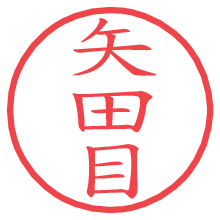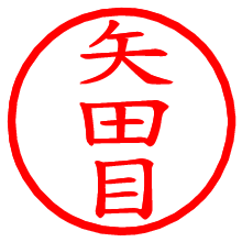 [朱肉の色]を選び、入力窓に“矢田目”と入力して[生成]ボタンを押すと、印影が更新され、リンクから電子印鑑(デジタル印影)がダウンロードできます。 電子印鑑「矢田目」の作り方文字表示が変なときや、文字バランスが悪いときは[字形切替]のチェックボックスでON/OFFを切り替え[生成]しなおしてください。 生成される画像は通常の印影「矢田目.png」と、にじみを表現した少し太めの印影「矢田目B.png」の背面透過PNG形式2種と、鮮明なPDF形式の印影「矢田目.pdf」の計3種類です。 朱肉の微妙な色の違いを7色で表現しました。デフォルト(左端)は、JISが定めた朱肉の色のマンセル値(7.5R 5/14)をRGB値(217,66,54)に変換したものになっています。 「電子透かし」にチェックを入れて[生成]ボタンを押すと、タイムスタンプを電子透かしとして埋め込んだセキュアな電子印鑑が作れます。詳細は別ページの「タイムスタンプと電子透かし」でご覧ください。 矢田目さんの日付印が作れます。「日付スタンプメーカー」は、社内向けの書類に利用されることの多い日付印(データ印)が無料で作れるWebアプリケーションです。中段に日付が入り、上段と下段は、ともに8文字まで文字が入ります。 ![]() 古代文字で落款印が作れます。「落款スタンプメーカー」で作品を引き立たせる落款印が作れます。