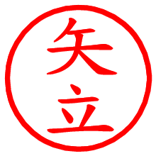 [朱肉の色]を選び、入力窓に“矢立”と入力して[生成]ボタンを押すと、印影が更新され、リンクから電子印鑑(デジタル印影)がダウンロードできます。 電子印鑑「矢立」の作り方文字表示が変なときや、文字バランスが悪いときは[字形切替]のチェックボックスでON/OFFを切り替え[生成]しなおしてください。 生成される画像は通常の印影「矢立.png」と、にじみを表現した少し太めの印影「矢立B.png」の背面透過PNG形式2種と、鮮明なPDF形式の印影「矢立.pdf」の計3種類です。 朱肉の微妙な色の違いを7色で表現しました。デフォルト(左端)は、JISが定めた朱肉の色のマンセル値(7.5R 5/14)をRGB値(217,66,54)に変換したものになっています。 「電子透かし」にチェックを入れて[生成]ボタンを押すと、タイムスタンプを電子透かしとして埋め込んだセキュアな電子印鑑が作れます。詳細は別ページの「タイムスタンプと電子透かし」でご覧ください。 矢立さんの日付印が作れます。「日付スタンプメーカー」は、社内向けの書類に利用されることの多い日付印(データ印)が無料で作れるWebアプリケーションです。中段に日付が入り、上段と下段は、ともに8文字まで文字が入ります。 ![]() 古代文字で落款印が作れます。「落款スタンプメーカー」で作品を引き立たせる落款印が作れます。