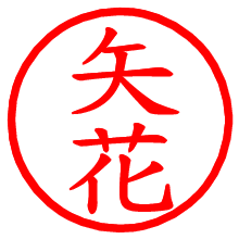 [朱肉の色]を選び、入力窓に“矢花”と入力して[生成]ボタンを押すと、印影が更新され、リンクから電子印鑑(デジタル印影)がダウンロードできます。 電子印鑑「矢花」の作り方文字表示が変なときや、文字バランスが悪いときは[字形切替]のチェックボックスでON/OFFを切り替え[生成]しなおしてください。 生成される画像は通常の印影「矢花.png」と、にじみを表現した少し太めの印影「矢花B.png」の背面透過PNG形式2種と、鮮明なPDF形式の印影「矢花.pdf」の計3種類です。 朱肉の微妙な色の違いを7色で表現しました。デフォルト(左端)は、JISが定めた朱肉の色のマンセル値(7.5R 5/14)をRGB値(217,66,54)に変換したものになっています。 「電子透かし」にチェックを入れて[生成]ボタンを押すと、タイムスタンプを電子透かしとして埋め込んだセキュアな電子印鑑が作れます。詳細は別ページの「タイムスタンプと電子透かし」でご覧ください。 矢花さんの日付印が作れます。「日付スタンプメーカー」は、社内向けの書類に利用されることの多い日付印(データ印)が無料で作れるWebアプリケーションです。中段に日付が入り、上段と下段は、ともに8文字まで文字が入ります。 ![]() 古代文字で落款印が作れます。「落款スタンプメーカー」で作品を引き立たせる落款印が作れます。