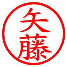 [朱肉の色]を選び、入力窓に“矢藤”と入力して[生成]ボタンを押すと、印影が更新され、リンクから電子印鑑(デジタル印影)がダウンロードできます。 電子印鑑「矢藤」の作り方文字表示が変なときや、文字バランスが悪いときは[字形切替]のチェックボックスでON/OFFを切り替え[生成]しなおしてください。 生成される画像は通常の印影「矢藤.png」と、にじみを表現した少し太めの印影「矢藤B.png」の背面透過PNG形式2種と、鮮明なPDF形式の印影「矢藤.pdf」の計3種類です。 朱肉の微妙な色の違いを7色で表現しました。デフォルト(左端)は、JISが定めた朱肉の色のマンセル値(7.5R 5/14)をRGB値(217,66,54)に変換したものになっています。 「電子透かし」にチェックを入れて[生成]ボタンを押すと、タイムスタンプを電子透かしとして埋め込んだセキュアな電子印鑑が作れます。詳細は別ページの「タイムスタンプと電子透かし」でご覧ください。 矢藤さんの日付印が作れます。「日付スタンプメーカー」は、社内向けの書類に利用されることの多い日付印(データ印)が無料で作れるWebアプリケーションです。中段に日付が入り、上段と下段は、ともに8文字まで文字が入ります。 ![]() 古代文字で落款印が作れます。「落款スタンプメーカー」で作品を引き立たせる落款印が作れます。
