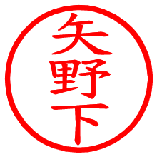 [朱肉の色]を選び、入力窓に“矢野下”と入力して[生成]ボタンを押すと、印影が更新され、リンクから電子印鑑(デジタル印影)がダウンロードできます。 電子印鑑「矢野下」の作り方文字表示が変なときや、文字バランスが悪いときは[字形切替]のチェックボックスでON/OFFを切り替え[生成]しなおしてください。 生成される画像は通常の印影「矢野下.png」と、にじみを表現した少し太めの印影「矢野下B.png」の背面透過PNG形式2種と、鮮明なPDF形式の印影「矢野下.pdf」の計3種類です。 朱肉の微妙な色の違いを7色で表現しました。デフォルト(左端)は、JISが定めた朱肉の色のマンセル値(7.5R 5/14)をRGB値(217,66,54)に変換したものになっています。 「電子透かし」にチェックを入れて[生成]ボタンを押すと、タイムスタンプを電子透かしとして埋め込んだセキュアな電子印鑑が作れます。詳細は別ページの「タイムスタンプと電子透かし」でご覧ください。 矢野下さんの日付印が作れます。「日付スタンプメーカー」は、社内向けの書類に利用されることの多い日付印(データ印)が無料で作れるWebアプリケーションです。中段に日付が入り、上段と下段は、ともに8文字まで文字が入ります。 ![]() 古代文字で落款印が作れます。「落款スタンプメーカー」で作品を引き立たせる落款印が作れます。