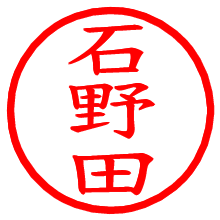 [朱肉の色]を選び、入力窓に“石野田”と入力して[生成]ボタンを押すと、印影が更新され、リンクから電子印鑑(デジタル印影)がダウンロードできます。 電子印鑑「石野田」の作り方文字表示が変なときや、文字バランスが悪いときは[字形切替]のチェックボックスでON/OFFを切り替え[生成]しなおしてください。 生成される画像は通常の印影「石野田.png」と、にじみを表現した少し太めの印影「石野田B.png」の背面透過PNG形式2種と、鮮明なPDF形式の印影「石野田.pdf」の計3種類です。 朱肉の微妙な色の違いを7色で表現しました。デフォルト(左端)は、JISが定めた朱肉の色のマンセル値(7.5R 5/14)をRGB値(217,66,54)に変換したものになっています。 「電子透かし」にチェックを入れて[生成]ボタンを押すと、タイムスタンプを電子透かしとして埋め込んだセキュアな電子印鑑が作れます。詳細は別ページの「タイムスタンプと電子透かし」でご覧ください。 石野田さんの日付印が作れます。「日付スタンプメーカー」は、社内向けの書類に利用されることの多い日付印(データ印)が無料で作れるWebアプリケーションです。中段に日付が入り、上段と下段は、ともに8文字まで文字が入ります。 ![]() 古代文字で落款印が作れます。「落款スタンプメーカー」で作品を引き立たせる落款印が作れます。