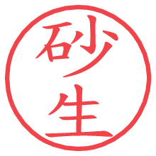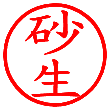 [朱肉の色]を選び、入力窓に“砂生”と入力して[生成]ボタンを押すと、印影が更新され、リンクから電子印鑑(デジタル印影)がダウンロードできます。 電子印鑑「砂生」の作り方文字表示が変なときや、文字バランスが悪いときは[字形切替]のチェックボックスでON/OFFを切り替え[生成]しなおしてください。 生成される画像は通常の印影「砂生.png」と、にじみを表現した少し太めの印影「砂生B.png」の背面透過PNG形式2種と、鮮明なPDF形式の印影「砂生.pdf」の計3種類です。 朱肉の微妙な色の違いを7色で表現しました。デフォルト(左端)は、JISが定めた朱肉の色のマンセル値(7.5R 5/14)をRGB値(217,66,54)に変換したものになっています。 「電子透かし」にチェックを入れて[生成]ボタンを押すと、タイムスタンプを透かしとして埋め込んだセキュアな電子印鑑が作れます。詳細は別ページの「電子透かしとタイムスタンプ」でご覧ください。  砂生さんの日付印が作れます。「日付スタンプメーカー」は、社内向けの書類に利用されることの多い日付印(データ印)が無料で作れるWebアプリケーションです。中段に日付が入り、上段と下段は、ともに8文字まで文字が入ります。 ![]()  古代文字で落款印が作れます。「落款スタンプメーカー」で作品を引き立たせる落款印が作れます。