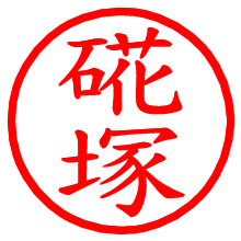 [朱肉の色]を選び、入力窓に“硴塚”と入力して[生成]ボタンを押すと、印影が更新され、リンクから電子印鑑(デジタル印影)がダウンロードできます。 電子印鑑「硴塚」の作り方文字表示が変なときや、文字バランスが悪いときは[字形切替]のチェックボックスでON/OFFを切り替え[生成]しなおしてください。 生成される画像は通常の印影「硴塚.png」と、にじみを表現した少し太めの印影「硴塚B.png」の背面透過PNG形式2種と、鮮明なPDF形式の印影「硴塚.pdf」の計3種類です。 朱肉の微妙な色の違いを7色で表現しました。デフォルト(左端)は、JISが定めた朱肉の色のマンセル値(7.5R 5/14)をRGB値(217,66,54)に変換したものになっています。 「電子透かし」にチェックを入れて[生成]ボタンを押すと、タイムスタンプを電子透かしとして埋め込んだセキュアな電子印鑑が作れます。詳細は別ページの「タイムスタンプと電子透かし」でご覧ください。 硴塚さんの日付印が作れます。「日付スタンプメーカー」は、社内向けの書類に利用されることの多い日付印(データ印)が無料で作れるWebアプリケーションです。中段に日付が入り、上段と下段は、ともに8文字まで文字が入ります。 ![]() 古代文字で落款印が作れます。「落款スタンプメーカー」で作品を引き立たせる落款印が作れます。