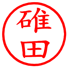 [朱肉の色]を選び、入力窓に“碓田”と入力して[生成]ボタンを押すと、印影が更新され、リンクから電子印鑑(デジタル印影)がダウンロードできます。 電子印鑑「碓田」の作り方文字表示が変なときや、文字バランスが悪いときは[字形切替]のチェックボックスでON/OFFを切り替え[生成]しなおしてください。 生成される画像は通常の印影「碓田.png」と、にじみを表現した少し太めの印影「碓田B.png」の背面透過PNG形式2種と、鮮明なPDF形式の印影「碓田.pdf」の計3種類です。 朱肉の微妙な色の違いを7色で表現しました。デフォルト(左端)は、JISが定めた朱肉の色のマンセル値(7.5R 5/14)をRGB値(217,66,54)に変換したものになっています。 「電子透かし」にチェックを入れて[生成]ボタンを押すと、タイムスタンプを電子透かしとして埋め込んだセキュアな電子印鑑が作れます。詳細は別ページの「タイムスタンプと電子透かし」でご覧ください。 碓田さんの日付印が作れます。「日付スタンプメーカー」は、社内向けの書類に利用されることの多い日付印(データ印)が無料で作れるWebアプリケーションです。中段に日付が入り、上段と下段は、ともに8文字まで文字が入ります。 ![]() 古代文字で落款印が作れます。「落款スタンプメーカー」で作品を引き立たせる落款印が作れます。
