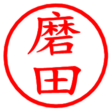 [朱肉の色]を選び、入力窓に“磨田”と入力して[生成]ボタンを押すと、印影が更新され、リンクから電子印鑑(デジタル印影)がダウンロードできます。 電子印鑑「磨田」の作り方文字表示が変なときや、文字バランスが悪いときは[字形切替]のチェックボックスでON/OFFを切り替え[生成]しなおしてください。 生成される画像は通常の印影「磨田.png」と、にじみを表現した少し太めの印影「磨田B.png」の背面透過PNG形式2種と、鮮明なPDF形式の印影「磨田.pdf」の計3種類です。 朱肉の微妙な色の違いを7色で表現しました。デフォルト(左端)は、JISが定めた朱肉の色のマンセル値(7.5R 5/14)をRGB値(217,66,54)に変換したものになっています。 「電子透かし」にチェックを入れて[生成]ボタンを押すと、タイムスタンプを電子透かしとして埋め込んだセキュアな電子印鑑が作れます。詳細は別ページの「タイムスタンプと電子透かし」でご覧ください。 磨田さんの日付印が作れます。「日付スタンプメーカー」は、社内向けの書類に利用されることの多い日付印(データ印)が無料で作れるWebアプリケーションです。中段に日付が入り、上段と下段は、ともに8文字まで文字が入ります。 ![]() 古代文字で落款印が作れます。「落款スタンプメーカー」で作品を引き立たせる落款印が作れます。