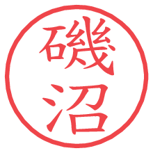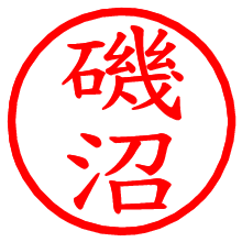 [朱肉の色]を選び、入力窓に“磯沼”と入力して[生成]ボタンを押すと、印影が更新され、リンクから電子印鑑(デジタル印影)がダウンロードできます。 電子印鑑「磯沼」の作り方文字表示が変なときや、文字バランスが悪いときは[字形切替]のチェックボックスでON/OFFを切り替え[生成]しなおしてください。 生成される画像は通常の印影「磯沼.png」と、にじみを表現した少し太めの印影「磯沼B.png」の背面透過PNG形式2種と、鮮明なPDF形式の印影「磯沼.pdf」の計3種類です。 朱肉の微妙な色の違いを7色で表現しました。デフォルト(左端)は、JISが定めた朱肉の色のマンセル値(7.5R 5/14)をRGB値(217,66,54)に変換したものになっています。 「電子透かし」にチェックを入れて[生成]ボタンを押すと、タイムスタンプを電子透かしとして埋め込んだセキュアな電子印鑑が作れます。詳細は別ページの「タイムスタンプと電子透かし」でご覧ください。 磯沼さんの日付印が作れます。「日付スタンプメーカー」は、社内向けの書類に利用されることの多い日付印(データ印)が無料で作れるWebアプリケーションです。中段に日付が入り、上段と下段は、ともに8文字まで文字が入ります。 ![]() 古代文字で落款印が作れます。「落款スタンプメーカー」で作品を引き立たせる落款印が作れます。