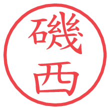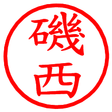 [朱肉の色]を選び、入力窓に“磯西”と入力して[生成]ボタンを押すと、印影が更新され、リンクから電子印鑑(デジタル印影)がダウンロードできます。 電子印鑑「磯西」の作り方文字表示が変なときや、文字バランスが悪いときは[字形切替]のチェックボックスでON/OFFを切り替え[生成]しなおしてください。 生成される画像は通常の印影「磯西.png」と、にじみを表現した少し太めの印影「磯西B.png」の背面透過PNG形式2種と、鮮明なPDF形式の印影「磯西.pdf」の計3種類です。 朱肉の微妙な色の違いを7色で表現しました。デフォルト(左端)は、JISが定めた朱肉の色のマンセル値(7.5R 5/14)をRGB値(217,66,54)に変換したものになっています。 「電子透かし」にチェックを入れて[生成]ボタンを押すと、タイムスタンプを電子透かしとして埋め込んだセキュアな電子印鑑が作れます。詳細は別ページの「タイムスタンプと電子透かし」でご覧ください。 磯西さんの日付印が作れます。「日付スタンプメーカー」は、社内向けの書類に利用されることの多い日付印(データ印)が無料で作れるWebアプリケーションです。中段に日付が入り、上段と下段は、ともに8文字まで文字が入ります。 ![]() 古代文字で落款印が作れます。「落款スタンプメーカー」で作品を引き立たせる落款印が作れます。