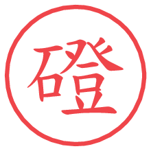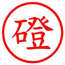 [朱肉の色]を選び、入力窓に“磴”と入力して[生成]ボタンを押すと、印影が更新され、リンクから電子印鑑(デジタル印影)がダウンロードできます。 電子印鑑「磴」の作り方文字表示が変なときや、文字バランスが悪いときは[字形切替]のチェックボックスでON/OFFを切り替え[生成]しなおしてください。 生成される画像は通常の印影「磴.png」と、にじみを表現した少し太めの印影「磴B.png」の背面透過PNG形式2種と、鮮明なPDF形式の印影「磴.pdf」の計3種類です。 朱肉の微妙な色の違いを7色で表現しました。デフォルト(左端)は、JISが定めた朱肉の色のマンセル値(7.5R 5/14)をRGB値(217,66,54)に変換したものになっています。 「電子透かし」にチェックを入れて[生成]ボタンを押すと、タイムスタンプを電子透かしとして埋め込んだセキュアな電子印鑑が作れます。詳細は別ページの「タイムスタンプと電子透かし」でご覧ください。 磴さんの日付印が作れます。「日付スタンプメーカー」は、社内向けの書類に利用されることの多い日付印(データ印)が無料で作れるWebアプリケーションです。中段に日付が入り、上段と下段は、ともに8文字まで文字が入ります。 ![]() 古代文字で落款印が作れます。「落款スタンプメーカー」で作品を引き立たせる落款印が作れます。