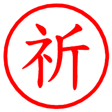 [朱肉の色]を選び、入力窓に“祈”と入力して[生成]ボタンを押すと、印影が更新され、リンクから電子印鑑(デジタル印影)がダウンロードできます。 電子印鑑「祈」の作り方文字表示が変なときや、文字バランスが悪いときは[字形切替]のチェックボックスでON/OFFを切り替え[生成]しなおしてください。 生成される画像は通常の印影「祈.png」と、にじみを表現した少し太めの印影「祈B.png」の背面透過PNG形式2種と、鮮明なPDF形式の印影「祈.pdf」の計3種類です。 朱肉の微妙な色の違いを7色で表現しました。デフォルト(左端)は、JISが定めた朱肉の色のマンセル値(7.5R 5/14)をRGB値(217,66,54)に変換したものになっています。 「電子透かし」にチェックを入れて[生成]ボタンを押すと、タイムスタンプを電子透かしとして埋め込んだセキュアな電子印鑑が作れます。詳細は別ページの「タイムスタンプと電子透かし」でご覧ください。 祈さんの日付印が作れます。「日付スタンプメーカー」は、社内向けの書類に利用されることの多い日付印(データ印)が無料で作れるWebアプリケーションです。中段に日付が入り、上段と下段は、ともに8文字まで文字が入ります。 ![]() 古代文字で落款印が作れます。「落款スタンプメーカー」で作品を引き立たせる落款印が作れます。