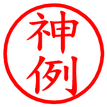 [朱肉の色]を選び、入力窓に“神例”と入力して[生成]ボタンを押すと、印影が更新され、リンクから電子印鑑(デジタル印影)がダウンロードできます。 電子印鑑「神例」の作り方文字表示が変なときや、文字バランスが悪いときは[字形切替]のチェックボックスでON/OFFを切り替え[生成]しなおしてください。 生成される画像は通常の印影「神例.png」と、にじみを表現した少し太めの印影「神例B.png」の背面透過PNG形式2種と、鮮明なPDF形式の印影「神例.pdf」の計3種類です。 朱肉の微妙な色の違いを7色で表現しました。デフォルト(左端)は、JISが定めた朱肉の色のマンセル値(7.5R 5/14)をRGB値(217,66,54)に変換したものになっています。 「電子透かし」にチェックを入れて[生成]ボタンを押すと、タイムスタンプを電子透かしとして埋め込んだセキュアな電子印鑑が作れます。詳細は別ページの「タイムスタンプと電子透かし」でご覧ください。 神例さんの日付印が作れます。「日付スタンプメーカー」は、社内向けの書類に利用されることの多い日付印(データ印)が無料で作れるWebアプリケーションです。中段に日付が入り、上段と下段は、ともに8文字まで文字が入ります。 ![]() 古代文字で落款印が作れます。「落款スタンプメーカー」で作品を引き立たせる落款印が作れます。