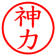 [朱肉の色]を選び、入力窓に“神力”と入力して[生成]ボタンを押すと、印影が更新され、リンクから電子印鑑(デジタル印影)がダウンロードできます。 電子印鑑「神力」の作り方文字表示が変なときや、文字バランスが悪いときは[字形切替]のチェックボックスでON/OFFを切り替え[生成]しなおしてください。 生成される画像は通常の印影「神力.png」と、にじみを表現した少し太めの印影「神力B.png」の背面透過PNG形式2種と、鮮明なPDF形式の印影「神力.pdf」の計3種類です。 朱肉の微妙な色の違いを7色で表現しました。デフォルト(左端)は、JISが定めた朱肉の色のマンセル値(7.5R 5/14)をRGB値(217,66,54)に変換したものになっています。 「電子透かし」にチェックを入れて[生成]ボタンを押すと、タイムスタンプを電子透かしとして埋め込んだセキュアな電子印鑑が作れます。詳細は別ページの「タイムスタンプと電子透かし」でご覧ください。 神力さんの日付印が作れます。「日付スタンプメーカー」は、社内向けの書類に利用されることの多い日付印(データ印)が無料で作れるWebアプリケーションです。中段に日付が入り、上段と下段は、ともに8文字まで文字が入ります。 ![]() 古代文字で落款印が作れます。「落款スタンプメーカー」で作品を引き立たせる落款印が作れます。