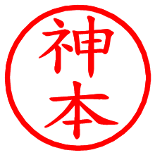 [朱肉の色]を選び、入力窓に“神本”と入力して[生成]ボタンを押すと、印影が更新され、リンクから電子印鑑(デジタル印影)がダウンロードできます。 電子印鑑「神本」の作り方文字表示が変なときや、文字バランスが悪いときは[字形切替]のチェックボックスでON/OFFを切り替え[生成]しなおしてください。 生成される画像は通常の印影「神本.png」と、にじみを表現した少し太めの印影「神本B.png」の背面透過PNG形式2種と、鮮明なPDF形式の印影「神本.pdf」の計3種類です。 朱肉の微妙な色の違いを7色で表現しました。デフォルト(左端)は、JISが定めた朱肉の色のマンセル値(7.5R 5/14)をRGB値(217,66,54)に変換したものになっています。 「電子透かし」にチェックを入れて[生成]ボタンを押すと、タイムスタンプを電子透かしとして埋め込んだセキュアな電子印鑑が作れます。詳細は別ページの「タイムスタンプと電子透かし」でご覧ください。 神本さんの日付印が作れます。「日付スタンプメーカー」は、社内向けの書類に利用されることの多い日付印(データ印)が無料で作れるWebアプリケーションです。中段に日付が入り、上段と下段は、ともに8文字まで文字が入ります。 ![]() 古代文字で落款印が作れます。「落款スタンプメーカー」で作品を引き立たせる落款印が作れます。