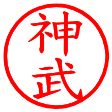 [朱肉の色]を選び、入力窓に“神武”と入力して[生成]ボタンを押すと、印影が更新され、リンクから電子印鑑(デジタル印影)がダウンロードできます。 電子印鑑「神武」の作り方文字表示が変なときや、文字バランスが悪いときは[字形切替]のチェックボックスでON/OFFを切り替え[生成]しなおしてください。 生成される画像は通常の印影「神武.png」と、にじみを表現した少し太めの印影「神武B.png」の背面透過PNG形式2種と、鮮明なPDF形式の印影「神武.pdf」の計3種類です。 朱肉の微妙な色の違いを7色で表現しました。デフォルト(左端)は、JISが定めた朱肉の色のマンセル値(7.5R 5/14)をRGB値(217,66,54)に変換したものになっています。 「電子透かし」にチェックを入れて[生成]ボタンを押すと、タイムスタンプを電子透かしとして埋め込んだセキュアな電子印鑑が作れます。詳細は別ページの「タイムスタンプと電子透かし」でご覧ください。 神武さんの日付印が作れます。「日付スタンプメーカー」は、社内向けの書類に利用されることの多い日付印(データ印)が無料で作れるWebアプリケーションです。中段に日付が入り、上段と下段は、ともに8文字まで文字が入ります。 ![]() 古代文字で落款印が作れます。「落款スタンプメーカー」で作品を引き立たせる落款印が作れます。