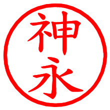 [朱肉の色]を選び、入力窓に“神永”と入力して[生成]ボタンを押すと、印影が更新され、リンクから電子印鑑(デジタル印影)がダウンロードできます。 電子印鑑「神永」の作り方文字表示が変なときや、文字バランスが悪いときは[字形切替]のチェックボックスでON/OFFを切り替え[生成]しなおしてください。 生成される画像は通常の印影「神永.png」と、にじみを表現した少し太めの印影「神永B.png」の背面透過PNG形式2種と、鮮明なPDF形式の印影「神永.pdf」の計3種類です。 朱肉の微妙な色の違いを7色で表現しました。デフォルト(左端)は、JISが定めた朱肉の色のマンセル値(7.5R 5/14)をRGB値(217,66,54)に変換したものになっています。 「電子透かし」にチェックを入れて[生成]ボタンを押すと、タイムスタンプを透かしとして埋め込んだセキュアな電子印鑑が作れます。詳細は別ページの「電子透かしとタイムスタンプ」でご覧ください。  神永さんの日付印が作れます。「日付スタンプメーカー」は、社内向けの書類に利用されることの多い日付印(データ印)が無料で作れるWebアプリケーションです。 中段に日付が入り、上段と下段は、ともに8文字まで文字が入ります。   古代文字で落款印が作れます。「落款スタンプメーカー」で作品を引き立たせる落款印が作れます。  なりきり書道 「落款スタンプメーカー」で作成した落款印の全体的な配置バランスの確認にご利用いただけます。デザインのワンポイントやラインスタンプ等にもお使いください。  遊び心ある神永さんの角印はいかが? 絵文字が使えてLINEスタンプや年賀状にも使える消しゴムはんこ風の電子印鑑が作れます。  画像スタンプメーカーは、猫派の方はもちろん。犬派の方にもおすすめしたいペットなどのお気に入りの画像とかわいいタッチの文字が入るほっこりしたスタンプです。 マイスタンプメーカーとは法的な電子印鑑にはあたりませんので三文判的な位置付けでご利用ください。 | ||