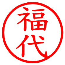 [朱肉の色]を選び、入力窓に“福代”と入力して[生成]ボタンを押すと、印影が更新され、リンクから電子印鑑(デジタル印影)がダウンロードできます。 電子印鑑「福代」の作り方文字表示が変なときや、文字バランスが悪いときは[字形切替]のチェックボックスでON/OFFを切り替え[生成]しなおしてください。 生成される画像は通常の印影「福代.png」と、にじみを表現した少し太めの印影「福代B.png」の背面透過PNG形式2種と、鮮明なPDF形式の印影「福代.pdf」の計3種類です。 朱肉の微妙な色の違いを7色で表現しました。デフォルト(左端)は、JISが定めた朱肉の色のマンセル値(7.5R 5/14)をRGB値(217,66,54)に変換したものになっています。 「電子透かし」にチェックを入れて[生成]ボタンを押すと、タイムスタンプを電子透かしとして埋め込んだセキュアな電子印鑑が作れます。詳細は別ページの「タイムスタンプと電子透かし」でご覧ください。 福代さんの日付印が作れます。「日付スタンプメーカー」は、社内向けの書類に利用されることの多い日付印(データ印)が無料で作れるWebアプリケーションです。中段に日付が入り、上段と下段は、ともに8文字まで文字が入ります。 ![]() 古代文字で落款印が作れます。「落款スタンプメーカー」で作品を引き立たせる落款印が作れます。