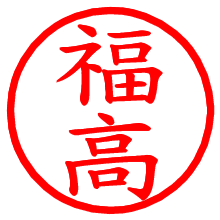 [朱肉の色]を選び、入力窓に“福高”と入力して[生成]ボタンを押すと、印影が更新され、リンクから電子印鑑(デジタル印影)がダウンロードできます。 電子印鑑「福高」の作り方文字表示が変なときや、文字バランスが悪いときは[字形切替]のチェックボックスでON/OFFを切り替え[生成]しなおしてください。 生成される画像は通常の印影「福高.png」と、にじみを表現した少し太めの印影「福高B.png」の背面透過PNG形式2種と、鮮明なPDF形式の印影「福高.pdf」の計3種類です。 朱肉の微妙な色の違いを7色で表現しました。デフォルト(左端)は、JISが定めた朱肉の色のマンセル値(7.5R 5/14)をRGB値(217,66,54)に変換したものになっています。 「電子透かし」にチェックを入れて[生成]ボタンを押すと、タイムスタンプを電子透かしとして埋め込んだセキュアな電子印鑑が作れます。詳細は別ページの「タイムスタンプと電子透かし」でご覧ください。 福高さんの日付印が作れます。「日付スタンプメーカー」は、社内向けの書類に利用されることの多い日付印(データ印)が無料で作れるWebアプリケーションです。中段に日付が入り、上段と下段は、ともに8文字まで文字が入ります。 ![]() 古代文字で落款印が作れます。「落款スタンプメーカー」で作品を引き立たせる落款印が作れます。
