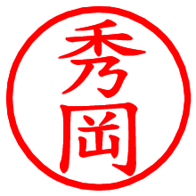 [朱肉の色]を選び、入力窓に“秀岡”と入力して[生成]ボタンを押すと、印影が更新され、リンクから電子印鑑(デジタル印影)がダウンロードできます。 電子印鑑「秀岡」の作り方文字表示が変なときや、文字バランスが悪いときは[字形切替]のチェックボックスでON/OFFを切り替え[生成]しなおしてください。 生成される画像は通常の印影「秀岡.png」と、にじみを表現した少し太めの印影「秀岡B.png」の背面透過PNG形式2種と、鮮明なPDF形式の印影「秀岡.pdf」の計3種類です。 朱肉の微妙な色の違いを7色で表現しました。デフォルト(左端)は、JISが定めた朱肉の色のマンセル値(7.5R 5/14)をRGB値(217,66,54)に変換したものになっています。 「電子透かし」にチェックを入れて[生成]ボタンを押すと、タイムスタンプを電子透かしとして埋め込んだセキュアな電子印鑑が作れます。詳細は別ページの「タイムスタンプと電子透かし」でご覧ください。 秀岡さんの日付印が作れます。「日付スタンプメーカー」は、社内向けの書類に利用されることの多い日付印(データ印)が無料で作れるWebアプリケーションです。中段に日付が入り、上段と下段は、ともに8文字まで文字が入ります。 ![]() 古代文字で落款印が作れます。「落款スタンプメーカー」で作品を引き立たせる落款印が作れます。