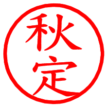 [朱肉の色]を選び、入力窓に“秋定”と入力して[生成]ボタンを押すと、印影が更新され、リンクから電子印鑑(デジタル印影)がダウンロードできます。 電子印鑑「秋定」の作り方文字表示が変なときや、文字バランスが悪いときは[字形切替]のチェックボックスでON/OFFを切り替え[生成]しなおしてください。 生成される画像は通常の印影「秋定.png」と、にじみを表現した少し太めの印影「秋定B.png」の背面透過PNG形式2種と、鮮明なPDF形式の印影「秋定.pdf」の計3種類です。 朱肉の微妙な色の違いを7色で表現しました。デフォルト(左端)は、JISが定めた朱肉の色のマンセル値(7.5R 5/14)をRGB値(217,66,54)に変換したものになっています。 「電子透かし」にチェックを入れて[生成]ボタンを押すと、タイムスタンプを電子透かしとして埋め込んだセキュアな電子印鑑が作れます。詳細は別ページの「タイムスタンプと電子透かし」でご覧ください。 秋定さんの日付印が作れます。「日付スタンプメーカー」は、社内向けの書類に利用されることの多い日付印(データ印)が無料で作れるWebアプリケーションです。中段に日付が入り、上段と下段は、ともに8文字まで文字が入ります。 ![]() 古代文字で落款印が作れます。「落款スタンプメーカー」で作品を引き立たせる落款印が作れます。