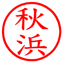 [朱肉の色]を選び、入力窓に“秋浜”と入力して[生成]ボタンを押すと、印影が更新され、リンクから電子印鑑(デジタル印影)がダウンロードできます。 電子印鑑「秋浜」の作り方文字表示が変なときや、文字バランスが悪いときは[字形切替]のチェックボックスでON/OFFを切り替え[生成]しなおしてください。 生成される画像は通常の印影「秋浜.png」と、にじみを表現した少し太めの印影「秋浜B.png」の背面透過PNG形式2種と、鮮明なPDF形式の印影「秋浜.pdf」の計3種類です。 朱肉の微妙な色の違いを7色で表現しました。デフォルト(左端)は、JISが定めた朱肉の色のマンセル値(7.5R 5/14)をRGB値(217,66,54)に変換したものになっています。 「電子透かし」にチェックを入れて[生成]ボタンを押すと、タイムスタンプを電子透かしとして埋め込んだセキュアな電子印鑑が作れます。詳細は別ページの「タイムスタンプと電子透かし」でご覧ください。 秋浜さんの日付印が作れます。「日付スタンプメーカー」は、社内向けの書類に利用されることの多い日付印(データ印)が無料で作れるWebアプリケーションです。中段に日付が入り、上段と下段は、ともに8文字まで文字が入ります。 ![]() 古代文字で落款印が作れます。「落款スタンプメーカー」で作品を引き立たせる落款印が作れます。