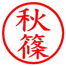 [朱肉の色]を選び、入力窓に“秋篠”と入力して[生成]ボタンを押すと、印影が更新され、リンクから電子印鑑(デジタル印影)がダウンロードできます。 電子印鑑「秋篠」の作り方文字表示が変なときや、文字バランスが悪いときは[字形切替]のチェックボックスでON/OFFを切り替え[生成]しなおしてください。 生成される画像は通常の印影「秋篠.png」と、にじみを表現した少し太めの印影「秋篠B.png」の背面透過PNG形式2種と、鮮明なPDF形式の印影「秋篠.pdf」の計3種類です。 朱肉の微妙な色の違いを7色で表現しました。デフォルト(左端)は、JISが定めた朱肉の色のマンセル値(7.5R 5/14)をRGB値(217,66,54)に変換したものになっています。 「電子透かし」にチェックを入れて[生成]ボタンを押すと、タイムスタンプを透かしとして埋め込んだセキュアな電子印鑑が作れます。詳細は別ページの「電子透かしとタイムスタンプ」でご覧ください。 秋篠さんの日付印が作れます。「日付スタンプメーカー」は、社内向けの書類に利用されることの多い日付印(データ印)が無料で作れるWebアプリケーションです。中段に日付が入り、上段と下段は、ともに8文字まで文字が入ります。 ![]() 古代文字で落款印が作れます。「落款スタンプメーカー」で作品を引き立たせる落款印が作れます。