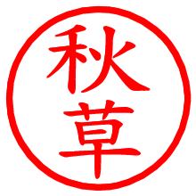 [朱肉の色]を選び、入力窓に“秋草”と入力して[生成]ボタンを押すと、印影が更新され、リンクから電子印鑑(デジタル印影)がダウンロードできます。 電子印鑑「秋草」の作り方文字表示が変なときや、文字バランスが悪いときは[字形切替]のチェックボックスでON/OFFを切り替え[生成]しなおしてください。 生成される画像は通常の印影「秋草.png」と、にじみを表現した少し太めの印影「秋草B.png」の背面透過PNG形式2種と、鮮明なPDF形式の印影「秋草.pdf」の計3種類です。 朱肉の微妙な色の違いを7色で表現しました。デフォルト(左端)は、JISが定めた朱肉の色のマンセル値(7.5R 5/14)をRGB値(217,66,54)に変換したものになっています。 「電子透かし」にチェックを入れて[生成]ボタンを押すと、タイムスタンプを電子透かしとして埋め込んだセキュアな電子印鑑が作れます。詳細は別ページの「タイムスタンプと電子透かし」でご覧ください。 秋草さんの日付印が作れます。「日付スタンプメーカー」は、社内向けの書類に利用されることの多い日付印(データ印)が無料で作れるWebアプリケーションです。中段に日付が入り、上段と下段は、ともに8文字まで文字が入ります。 ![]() 古代文字で落款印が作れます。「落款スタンプメーカー」で作品を引き立たせる落款印が作れます。