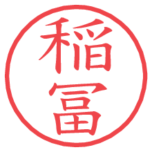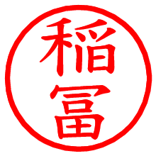 [朱肉の色]を選び、入力窓に“稲冨”と入力して[生成]ボタンを押すと、印影が更新され、リンクから電子印鑑(デジタル印影)がダウンロードできます。 電子印鑑「稲冨」の作り方文字表示が変なときや、文字バランスが悪いときは[字形切替]のチェックボックスでON/OFFを切り替え[生成]しなおしてください。 生成される画像は通常の印影「稲冨.png」と、にじみを表現した少し太めの印影「稲冨B.png」の背面透過PNG形式2種と、鮮明なPDF形式の印影「稲冨.pdf」の計3種類です。 朱肉の微妙な色の違いを7色で表現しました。デフォルト(左端)は、JISが定めた朱肉の色のマンセル値(7.5R 5/14)をRGB値(217,66,54)に変換したものになっています。 「電子透かし」にチェックを入れて[生成]ボタンを押すと、タイムスタンプを電子透かしとして埋め込んだセキュアな電子印鑑が作れます。詳細は別ページの「タイムスタンプと電子透かし」でご覧ください。 稲冨さんの日付印が作れます。「日付スタンプメーカー」は、社内向けの書類に利用されることの多い日付印(データ印)が無料で作れるWebアプリケーションです。中段に日付が入り、上段と下段は、ともに8文字まで文字が入ります。 ![]() 古代文字で落款印が作れます。「落款スタンプメーカー」で作品を引き立たせる落款印が作れます。