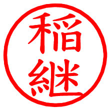 [朱肉の色]を選び、入力窓に“稲継”と入力して[生成]ボタンを押すと、印影が更新され、リンクから電子印鑑(デジタル印影)がダウンロードできます。 電子印鑑「稲継」の作り方文字表示が変なときや、文字バランスが悪いときは[字形切替]のチェックボックスでON/OFFを切り替え[生成]しなおしてください。 生成される画像は通常の印影「稲継.png」と、にじみを表現した少し太めの印影「稲継B.png」の背面透過PNG形式2種と、鮮明なPDF形式の印影「稲継.pdf」の計3種類です。 朱肉の微妙な色の違いを7色で表現しました。デフォルト(左端)は、JISが定めた朱肉の色のマンセル値(7.5R 5/14)をRGB値(217,66,54)に変換したものになっています。 「電子透かし」にチェックを入れて[生成]ボタンを押すと、タイムスタンプを電子透かしとして埋め込んだセキュアな電子印鑑が作れます。詳細は別ページの「タイムスタンプと電子透かし」でご覧ください。 稲継さんの日付印が作れます。「日付スタンプメーカー」は、社内向けの書類に利用されることの多い日付印(データ印)が無料で作れるWebアプリケーションです。中段に日付が入り、上段と下段は、ともに8文字まで文字が入ります。 ![]() 古代文字で落款印が作れます。「落款スタンプメーカー」で作品を引き立たせる落款印が作れます。