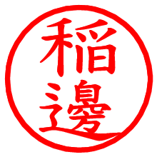 [朱肉の色]を選び、入力窓に“稲邊”と入力して[生成]ボタンを押すと、印影が更新され、リンクから電子印鑑(デジタル印影)がダウンロードできます。 電子印鑑「稲邊」の作り方文字表示が変なときや、文字バランスが悪いときは[字形切替]のチェックボックスでON/OFFを切り替え[生成]しなおしてください。 生成される画像は通常の印影「稲邊.png」と、にじみを表現した少し太めの印影「稲邊B.png」の背面透過PNG形式2種と、鮮明なPDF形式の印影「稲邊.pdf」の計3種類です。 朱肉の微妙な色の違いを7色で表現しました。デフォルト(左端)は、JISが定めた朱肉の色のマンセル値(7.5R 5/14)をRGB値(217,66,54)に変換したものになっています。 「電子透かし」にチェックを入れて[生成]ボタンを押すと、タイムスタンプを電子透かしとして埋め込んだセキュアな電子印鑑が作れます。詳細は別ページの「タイムスタンプと電子透かし」でご覧ください。 稲邊さんの日付印が作れます。「日付スタンプメーカー」は、社内向けの書類に利用されることの多い日付印(データ印)が無料で作れるWebアプリケーションです。中段に日付が入り、上段と下段は、ともに8文字まで文字が入ります。 ![]() 古代文字で落款印が作れます。「落款スタンプメーカー」で作品を引き立たせる落款印が作れます。