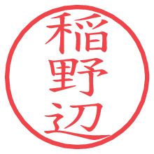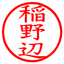 [朱肉の色]を選び、入力窓に“稲野辺”と入力して[生成]ボタンを押すと、印影が更新され、リンクから電子印鑑(デジタル印影)がダウンロードできます。 電子印鑑「稲野辺」の作り方文字表示が変なときや、文字バランスが悪いときは[字形切替]のチェックボックスでON/OFFを切り替え[生成]しなおしてください。 生成される画像は通常の印影「稲野辺.png」と、にじみを表現した少し太めの印影「稲野辺B.png」の背面透過PNG形式2種と、鮮明なPDF形式の印影「稲野辺.pdf」の計3種類です。 朱肉の微妙な色の違いを7色で表現しました。デフォルト(左端)は、JISが定めた朱肉の色のマンセル値(7.5R 5/14)をRGB値(217,66,54)に変換したものになっています。 「電子透かし」にチェックを入れて[生成]ボタンを押すと、タイムスタンプを電子透かしとして埋め込んだセキュアな電子印鑑が作れます。詳細は別ページの「タイムスタンプと電子透かし」でご覧ください。 稲野辺さんの日付印が作れます。「日付スタンプメーカー」は、社内向けの書類に利用されることの多い日付印(データ印)が無料で作れるWebアプリケーションです。中段に日付が入り、上段と下段は、ともに8文字まで文字が入ります。 ![]() 古代文字で落款印が作れます。「落款スタンプメーカー」で作品を引き立たせる落款印が作れます。