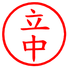 [朱肉の色]を選び、入力窓に“立中”と入力して[生成]ボタンを押すと、印影が更新され、リンクから電子印鑑(デジタル印影)がダウンロードできます。 電子印鑑「立中」の作り方文字表示が変なときや、文字バランスが悪いときは[字形切替]のチェックボックスでON/OFFを切り替え[生成]しなおしてください。 生成される画像は通常の印影「立中.png」と、にじみを表現した少し太めの印影「立中B.png」の背面透過PNG形式2種と、鮮明なPDF形式の印影「立中.pdf」の計3種類です。 朱肉の微妙な色の違いを7色で表現しました。デフォルト(左端)は、JISが定めた朱肉の色のマンセル値(7.5R 5/14)をRGB値(217,66,54)に変換したものになっています。 「電子透かし」にチェックを入れて[生成]ボタンを押すと、タイムスタンプを電子透かしとして埋め込んだセキュアな電子印鑑が作れます。詳細は別ページの「タイムスタンプと電子透かし」でご覧ください。 立中さんの日付印が作れます。「日付スタンプメーカー」は、社内向けの書類に利用されることの多い日付印(データ印)が無料で作れるWebアプリケーションです。中段に日付が入り、上段と下段は、ともに8文字まで文字が入ります。 ![]() 古代文字で落款印が作れます。「落款スタンプメーカー」で作品を引き立たせる落款印が作れます。