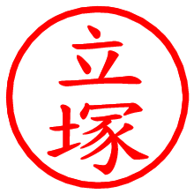 [朱肉の色]を選び、入力窓に“立塚”と入力して[生成]ボタンを押すと、印影が更新され、リンクから電子印鑑(デジタル印影)がダウンロードできます。 電子印鑑「立塚」の作り方文字表示が変なときや、文字バランスが悪いときは[字形切替]のチェックボックスでON/OFFを切り替え[生成]しなおしてください。 生成される画像は通常の印影「立塚.png」と、にじみを表現した少し太めの印影「立塚B.png」の背面透過PNG形式2種と、鮮明なPDF形式の印影「立塚.pdf」の計3種類です。 朱肉の微妙な色の違いを7色で表現しました。デフォルト(左端)は、JISが定めた朱肉の色のマンセル値(7.5R 5/14)をRGB値(217,66,54)に変換したものになっています。 「電子透かし」にチェックを入れて[生成]ボタンを押すと、タイムスタンプを電子透かしとして埋め込んだセキュアな電子印鑑が作れます。詳細は別ページの「タイムスタンプと電子透かし」でご覧ください。 立塚さんの日付印が作れます。「日付スタンプメーカー」は、社内向けの書類に利用されることの多い日付印(データ印)が無料で作れるWebアプリケーションです。中段に日付が入り、上段と下段は、ともに8文字まで文字が入ります。 ![]() 古代文字で落款印が作れます。「落款スタンプメーカー」で作品を引き立たせる落款印が作れます。