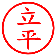 [朱肉の色]を選び、入力窓に“立平”と入力して[生成]ボタンを押すと、印影が更新され、リンクから電子印鑑(デジタル印影)がダウンロードできます。 電子印鑑「立平」の作り方文字表示が変なときや、文字バランスが悪いときは[字形切替]のチェックボックスでON/OFFを切り替え[生成]しなおしてください。 生成される画像は通常の印影「立平.png」と、にじみを表現した少し太めの印影「立平B.png」の背面透過PNG形式2種と、鮮明なPDF形式の印影「立平.pdf」の計3種類です。 朱肉の微妙な色の違いを7色で表現しました。デフォルト(左端)は、JISが定めた朱肉の色のマンセル値(7.5R 5/14)をRGB値(217,66,54)に変換したものになっています。 「電子透かし」にチェックを入れて[生成]ボタンを押すと、タイムスタンプを電子透かしとして埋め込んだセキュアな電子印鑑が作れます。詳細は別ページの「タイムスタンプと電子透かし」でご覧ください。 立平さんの日付印が作れます。「日付スタンプメーカー」は、社内向けの書類に利用されることの多い日付印(データ印)が無料で作れるWebアプリケーションです。中段に日付が入り、上段と下段は、ともに8文字まで文字が入ります。 ![]() 古代文字で落款印が作れます。「落款スタンプメーカー」で作品を引き立たせる落款印が作れます。